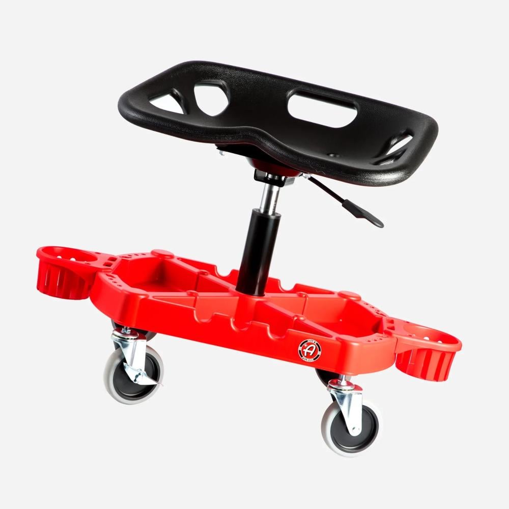 يأتي هذا الكرسي بلون أحمر جذّاب وهيكل صلب يتحمل الاستخدام المكثف، مع قاعدة متحركة وعجلات سلسة، بالإضافة إلى منطقة تخزين مدمجة لأغراضك وأدوات التلميع لتبقى في متناول يدك دائمًا.