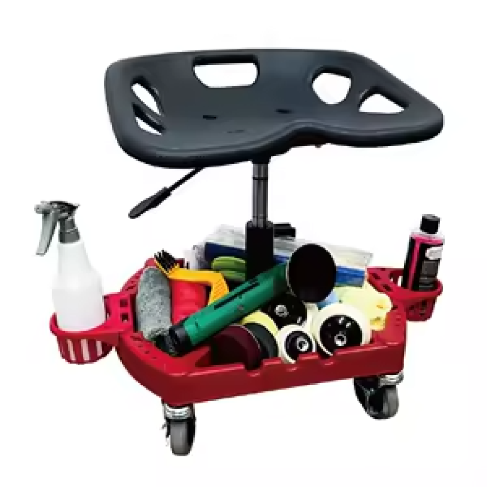 - كرسي العمل المتحرك القابل للتعديل لتلميع السيارات، مصمم هندسيًا لتوفير الراحة والعملية، قابل تعديل الارتفاع، بهيكل مصنوع من الفولاذ، مع عجلات دوارة متينة، ومساحة حمل وتنظيم مواد وأدوات التلميع، لتلميع أو تصحيح طلاء أي سيارة بشكل مريح.