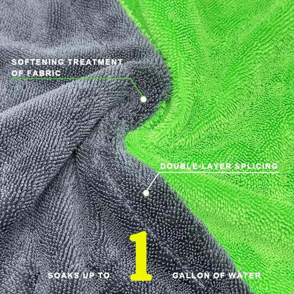 - تقدم كثافة استثنائية تمنحك أداءً احترافيًا في تجفيف السيارة، بفضل أليافها المزدوجة عالية الامتصاص التي تسحب الماء بسرعة من السطح.